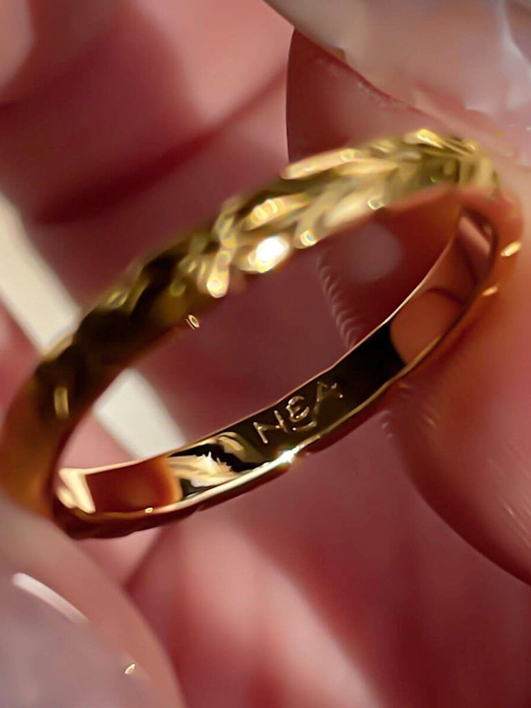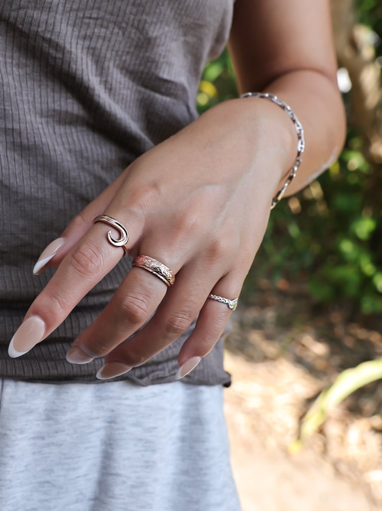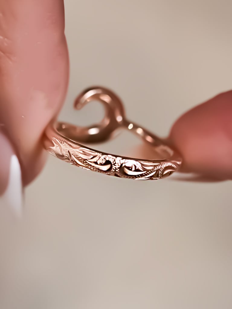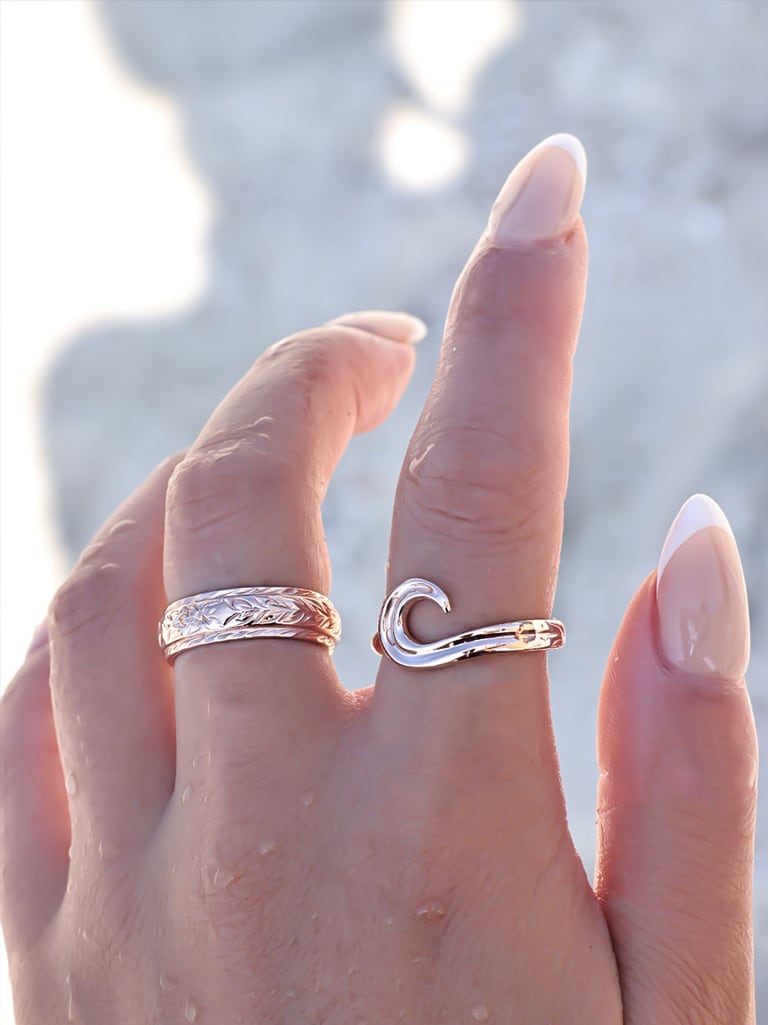 肌に吸い付くようになめらかな着脱のしやすさも魅力的なハワイアンリングです。