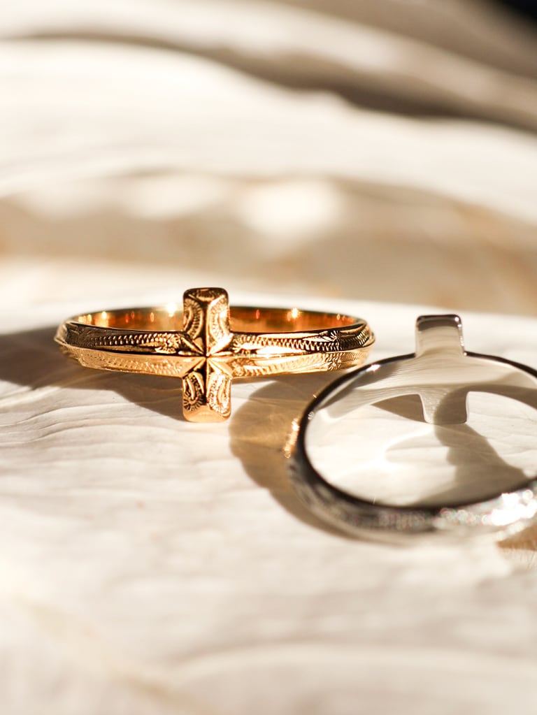 クロスリングは、その象徴をハワイアンジュエリー彫りで表現した特別な一本。