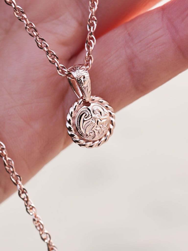 プルメリアと波の模様を彫り込んだ小さなメダリオン。