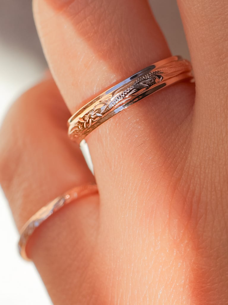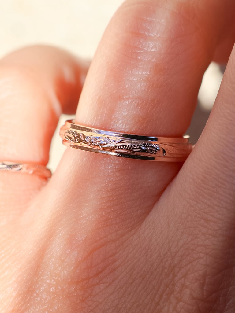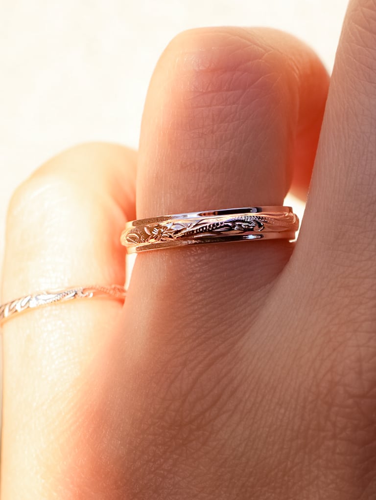 繊細なハワイアン彫りと鏡面のちゅるんとしたバランスが美しい