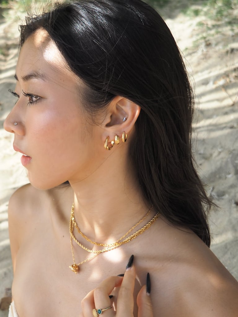 この縦ラインがより上品に見せてくれるハワイアンピアス。