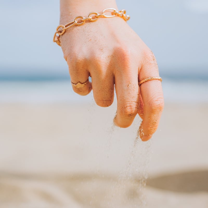 いつもの服装にシンプルリングをそっと加えるだけで繊細で素敵に。