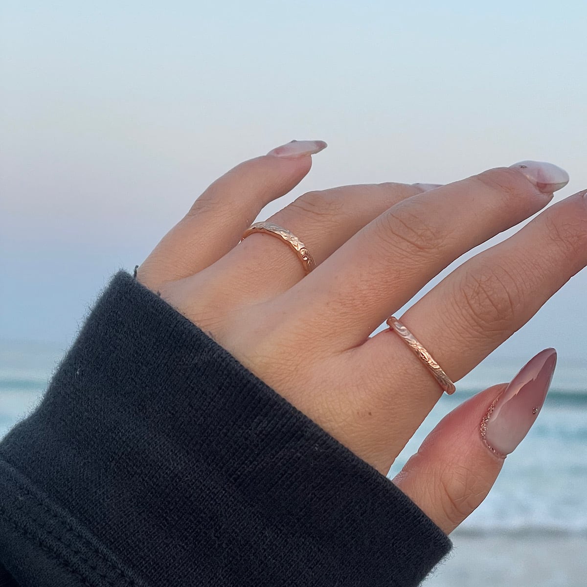 カップルでペアにしたり、他のリングを引き立てるオプションリングとしてもオススメです。