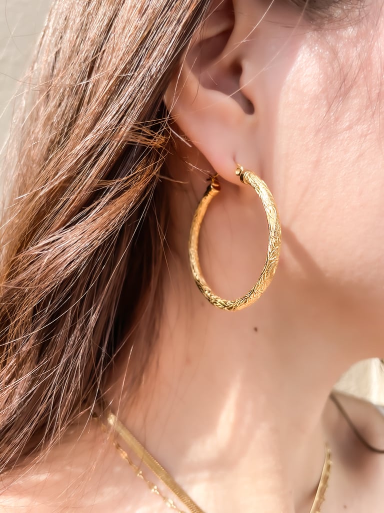 プルメリア柄とスクロール柄が彫られてあるチューブピアス。